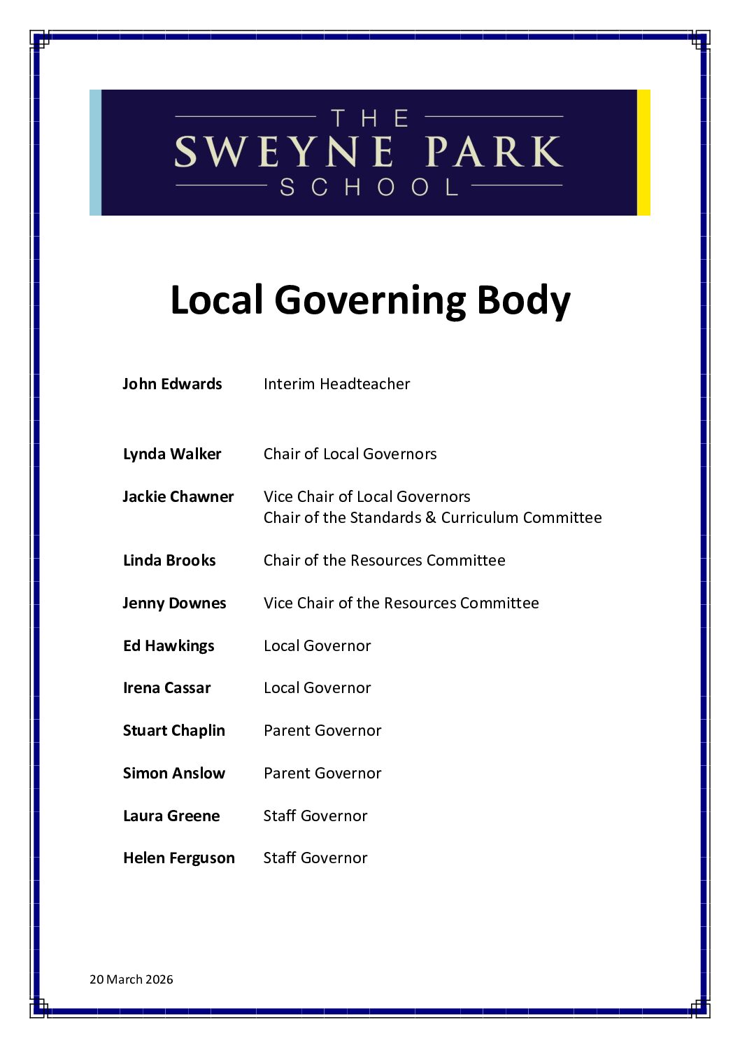 The Local Governing Body meetings are held once a term, usually in the second half of the term. Whole school issues are discussed and decisions and policies agreed as appropriate. All Governors are expected to attend these meetings.