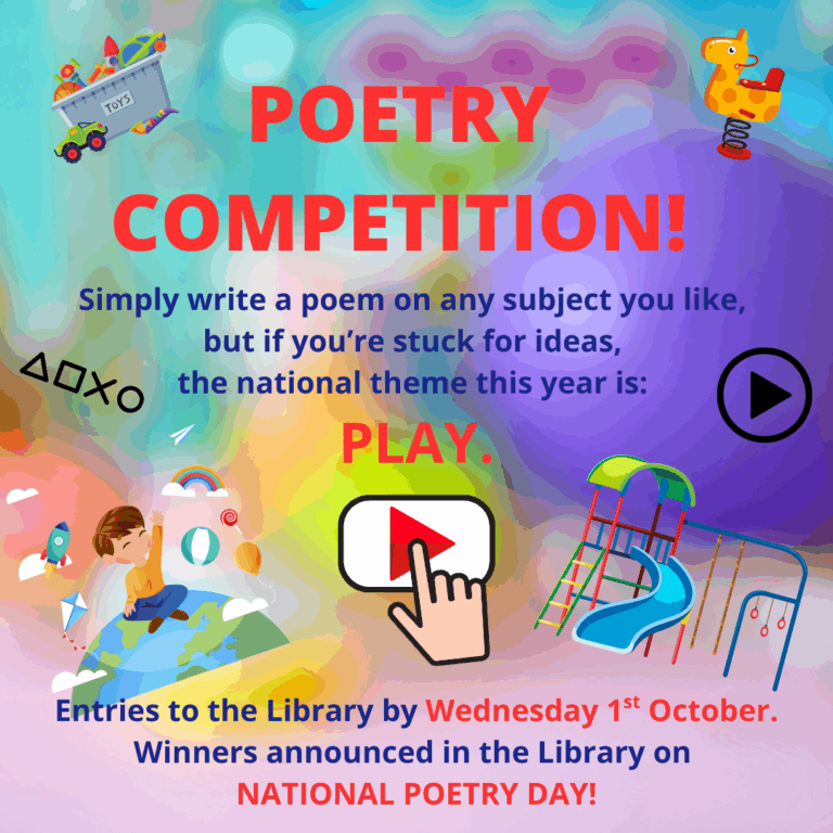 It’s time for the Library’s Annual Poetry Competition! Simply write a poem on any subject you like, but if you’re stuck for ideas, the national theme this year is PLAY.